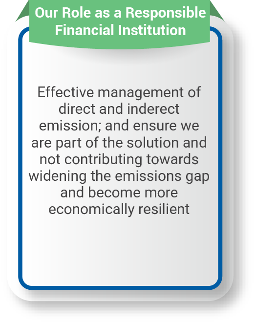 - Prioritising employee welfare and ensuring that we create a healthy, safe and inclusive workplace environment for our employees. We will also focus on building a strong sustainability culture within the Bank.