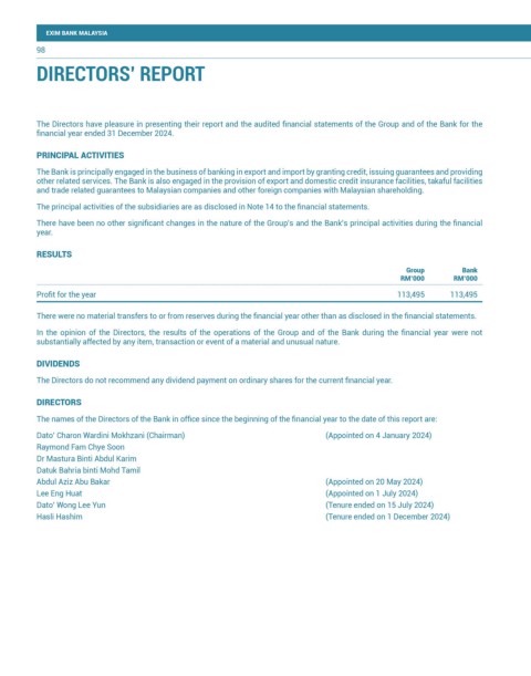 other related services. The Bank is also engaged in the provision of export and domestic credit insurance facilities, takaful facilities
