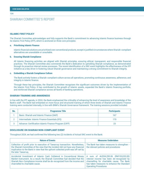 Bank’s staff. The Bank had embarked on more focus and structured training of which three levels of Shariah and Islamic Finance