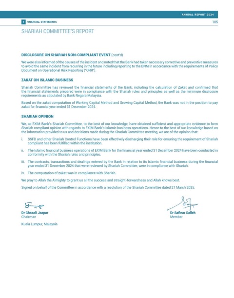 ii. The Islamic financial business operations of EXIM Bank for the financial year ended 31 December 2024 have been conducted in