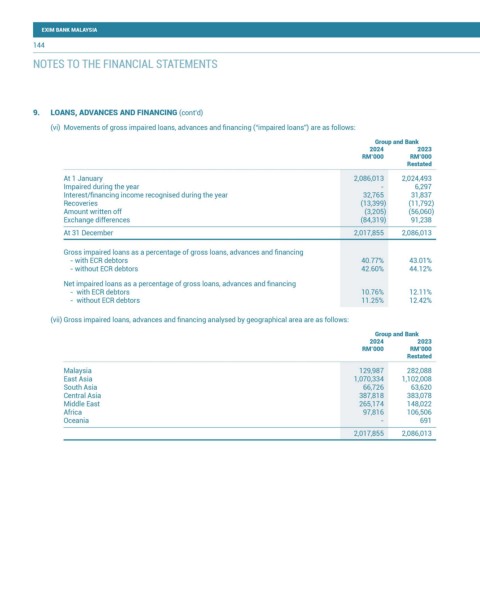 (vii) Gross impaired loans, advances and financing analysed by geographical area are as follows: