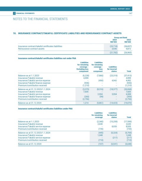 10. INSURANCE CONTRACT/TAKAFUL CERTIFICATE LIABILITIES AND REINSURANCE CONTRACT ASSETS
