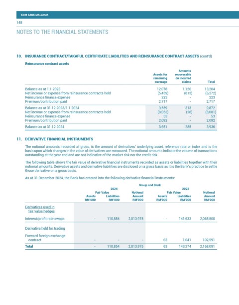 10. INSURANCE CONTRACT/TAKAFUL CERTIFICATE LIABILITIES AND REINSURANCE CONTRACT ASSETS (cont’d)