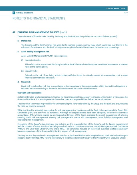 42. FINANCIAL RISK MANAGEMENT POLICIES (cont’d)