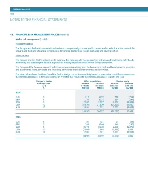 The table below shows the Group’s and the Bank’s foreign currencies sensitivity based on reasonable possible movements on