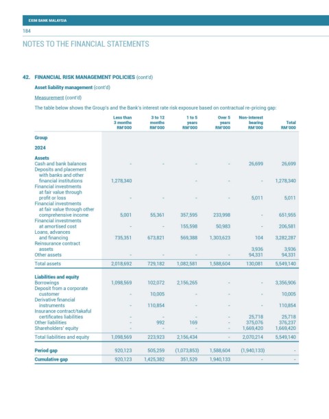 The table below shows the Group’s and the Bank’s interest rate risk exposure based on contractual re-pricing gap: