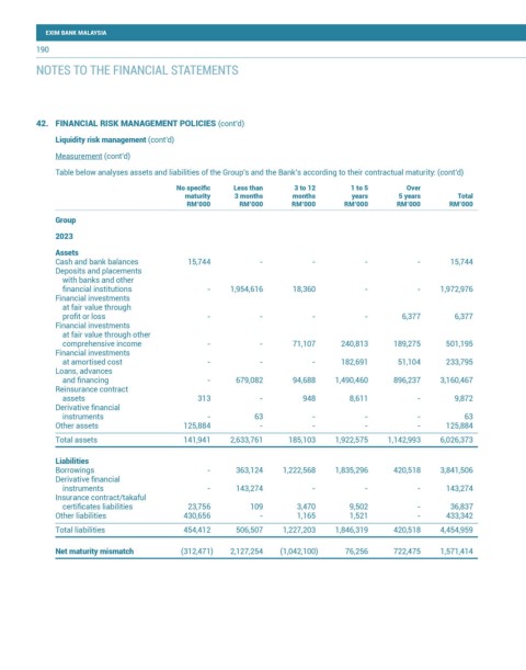 42. FINANCIAL RISK MANAGEMENT POLICIES (cont’d)