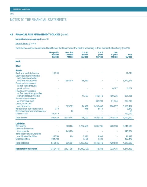 Table below analyses assets and liabilities of the Group’s and the Bank’s according to their contractual maturity: (cont’d)