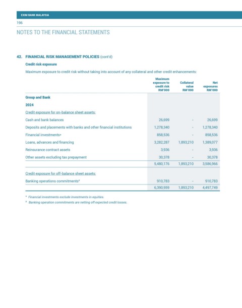 42. FINANCIAL RISK MANAGEMENT POLICIES (cont’d)