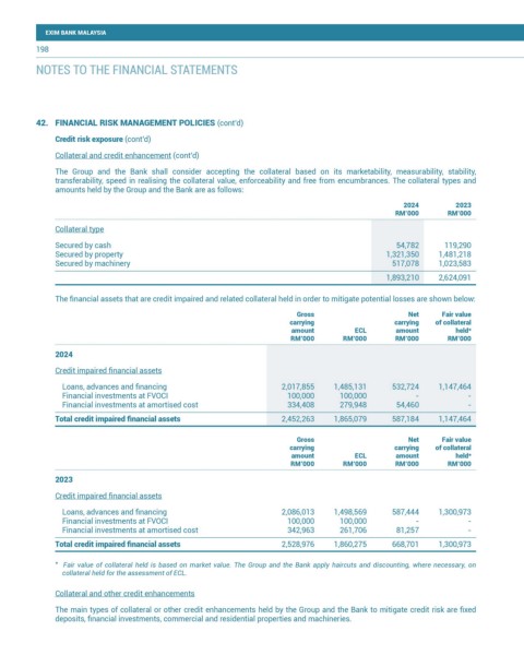 * Fair value of collateral held is based on market value. The Group and the Bank apply haircuts and discounting, where necessary, on