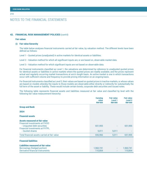 42. FINANCIAL RISK MANAGEMENT POLICIES (cont’d)