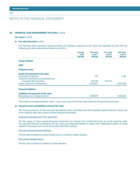42. FINANCIAL RISK MANAGEMENT POLICIES (cont’d)