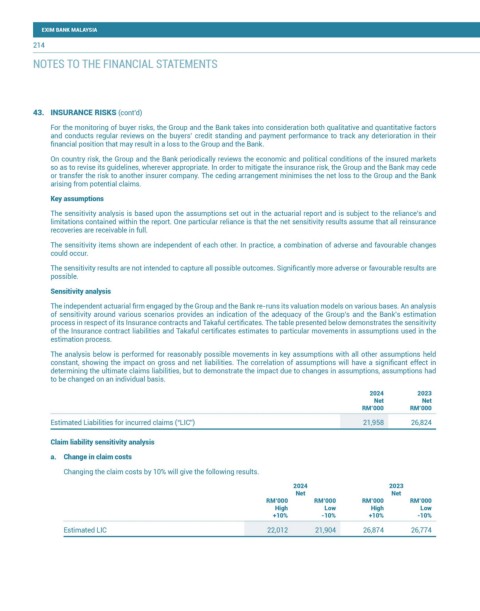 process in respect of its Insurance contracts and Takaful certificates. The table presented below demonstrates the sensitivity