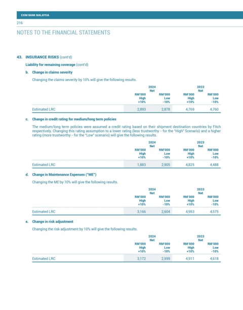43. INSURANCE RISKS (cont’d)