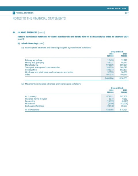 (v) Islamic gross advances and financing analysed by industry are as follows: