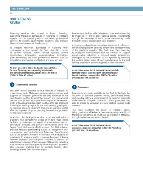 cross-border trade. Malaysian manufacturers, exporters and Guarantees are made available by the Bank to facilitate the