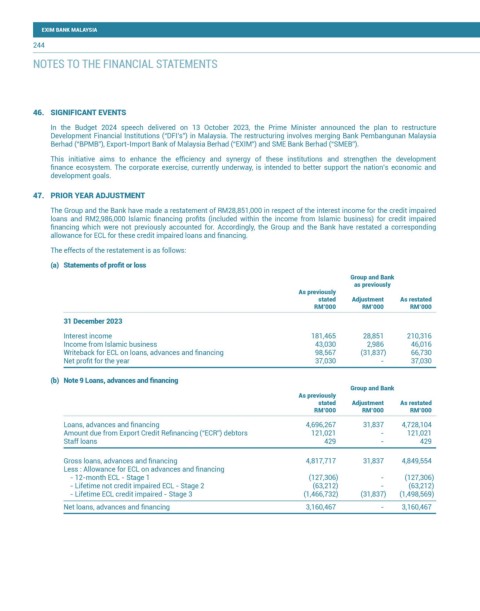 financing which were not previously accounted for. Accordingly, the Group and the Bank have restated a corresponding