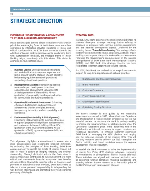 ethical considerations. As EXIM Bank advances towards the enduring theme, “Towards Ihsan Banking,” the strategy reflects