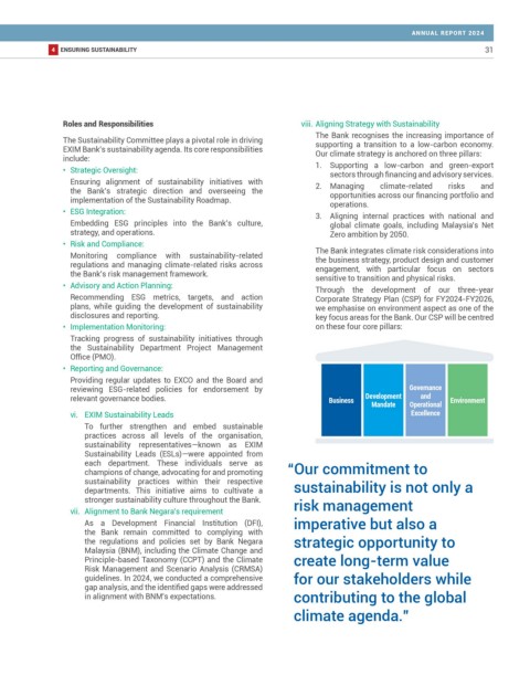 EXIM Bank’s sustainability agenda. Its core responsibilities Our climate strategy is anchored on three pillars:
