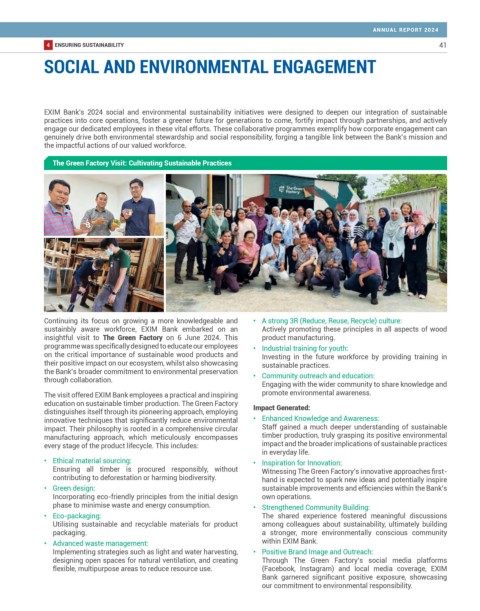 sustainbly aware workforce, EXIM Bank embarked on an Actively promoting these principles in all aspects of wood