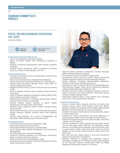 • Internal Shariah Advisory Board, Citibank N.A. Labuan Branch • Visiting Professor, Universitas Muhammadiyah Palembang,
