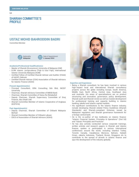 • Chairman, Shariah Advisory Committee of MBSB Bank Middle East, North Africa, Central Asia, Southeast Asia