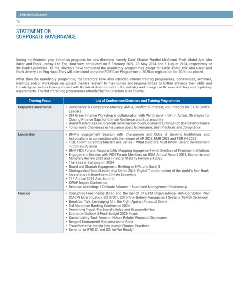 Other than the mandatory programme, the Directors have also attended various training programmes, conferences, seminars,