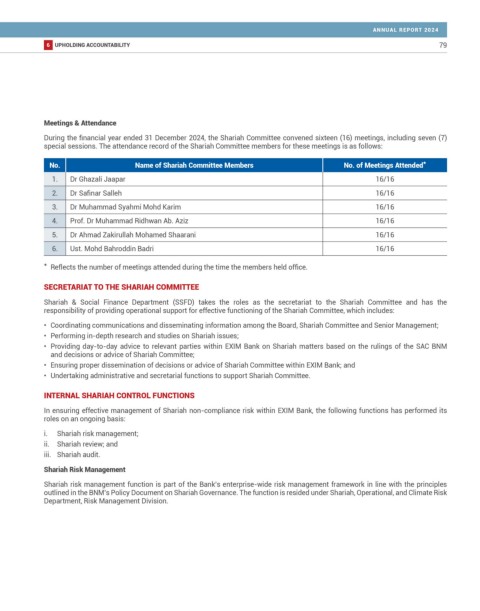 special sessions. The attendance record of the Shariah Committee members for these meetings is as follows:
