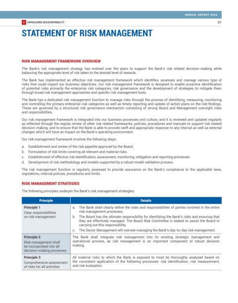 The Bank’s risk management strategy has evolved over the years to support the Bank’s risk related decision-making while