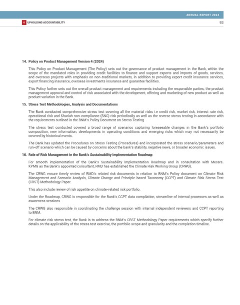 For climate risk stress test, the Bank is to address the BNM’s CRST Methodology Paper requirements which specify further
